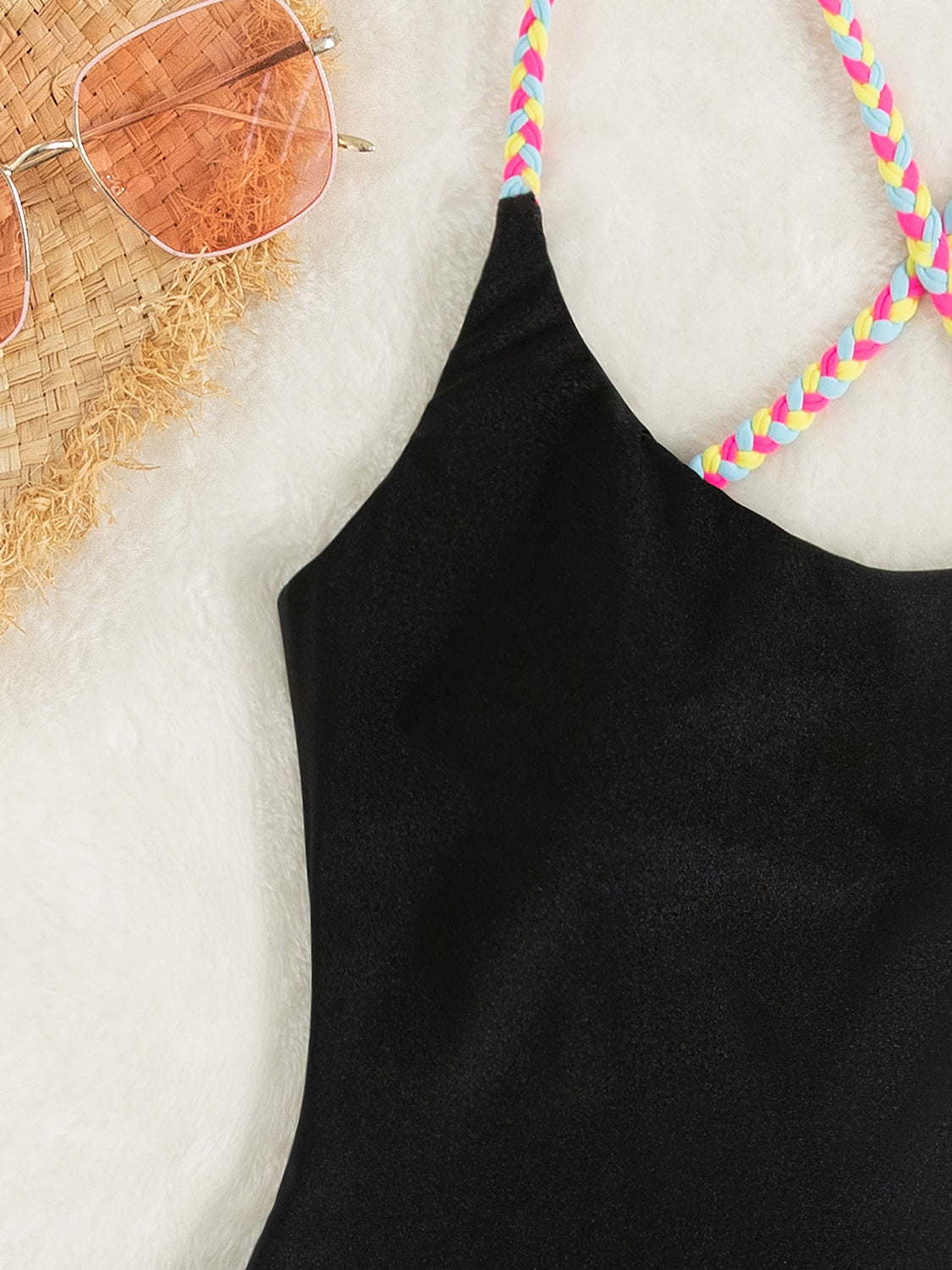 Tied Braided Strap Scoop Neck One-Piece Swimwear